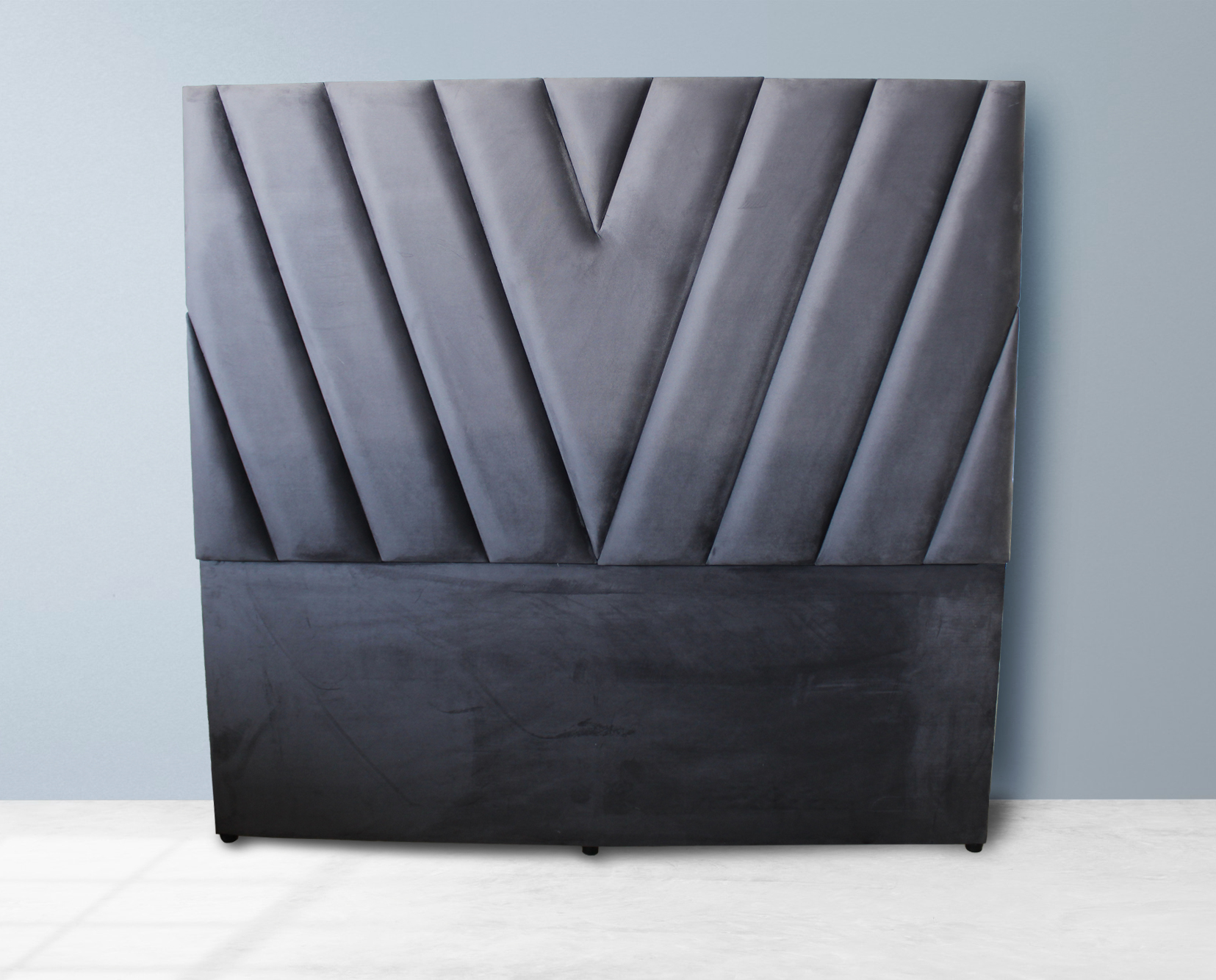 A bold, floor-standing velvet headboard that takes inspiration from the dramatic shape of a “V”. Available in a stunning range of 40 colours, Vyrexx makes a powerful statement in any bedroom, combining edgy design with plush comfort.